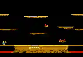 Master the skies atop flightless birds in Joust for Atari 7800. This classic arcade action platformer pits armored knights in intense, airborne arena combat.