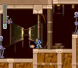 Take control of blue robotic hero X through eight initial missions. Select stages freely, defeat the powerful Maverick leader at its conclusion to obtain a new ability. Navigate side-scrolling environments with fast mobility while aiming carefully toward challenging projectile enemies and environmental traps and searching for upgrades along the way.