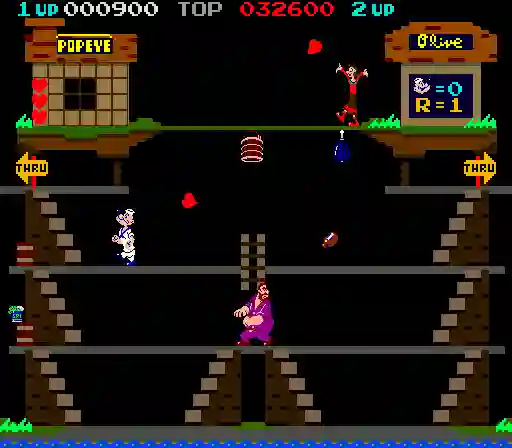 Control Popeye against the brutish Bluto and other hazards while collecting objects to win the heart of Olive Oyl.